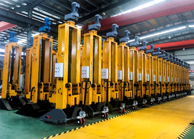 適用于軌道車、工程車檢修作業(yè)時(shí)的架升、落車的專用設(shè)備,以便對轉(zhuǎn)向架及其它部件進(jìn)行維修和更換作業(yè)。